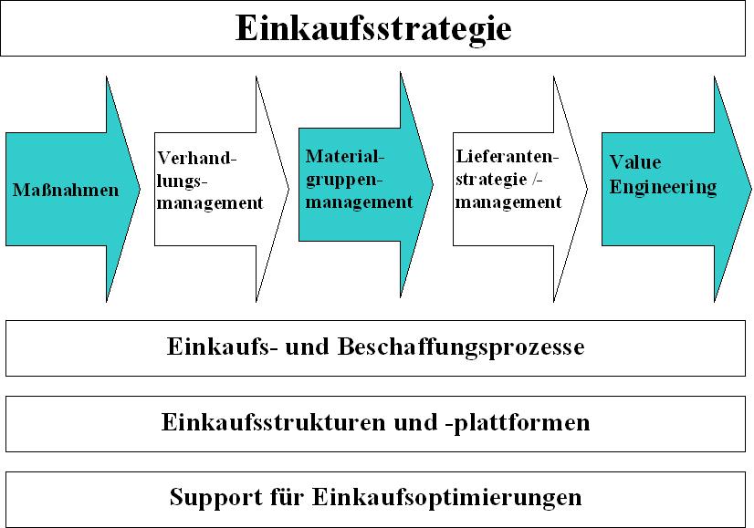 Den zentralen, kurzfristig wirksamen Optimierungsmaßnahmen im Einkauf stellen die Preisverhandlung mit den Lieferanten dar. Deshalb erfolgt zunächst eine detaillierte Analyse der Rohmaterialentwicklung, Preisvergleiche, aktuellen Position des Unternehmens beim Lieferanten und der Transparenz über die Kostenstruktur der bezogenen Ware oder Dienstleistung. So lassen sich Einsparungen bei den Lieferanten realisieren und nachhaltig gute Einkaufspreise erzielen. Sinnvolle Alternativen zur Reduzierung der Einstandspreise sind etwa Jahresboni, eine Verbesserung der Zahlungsbedingungen oder die Übernahme der Bestände in Konsignationslager.